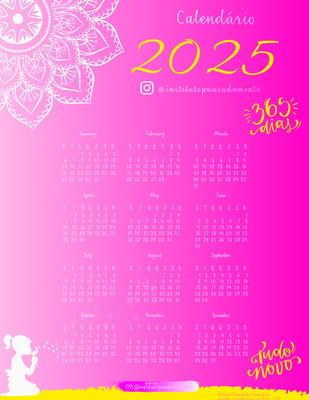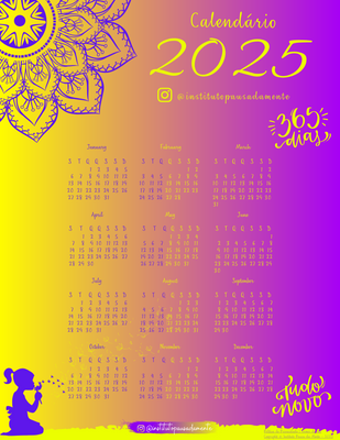 Flexibilidade! Você pode imprimir todo de uma vez, ou mês a mês, semana a semana, ou até diariamente... Você decide! rsrs